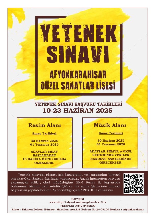 YETENEK SINAVLARINA BAŞVURU İÇİN BAĞLANTIYI TIKLAYINIZ.